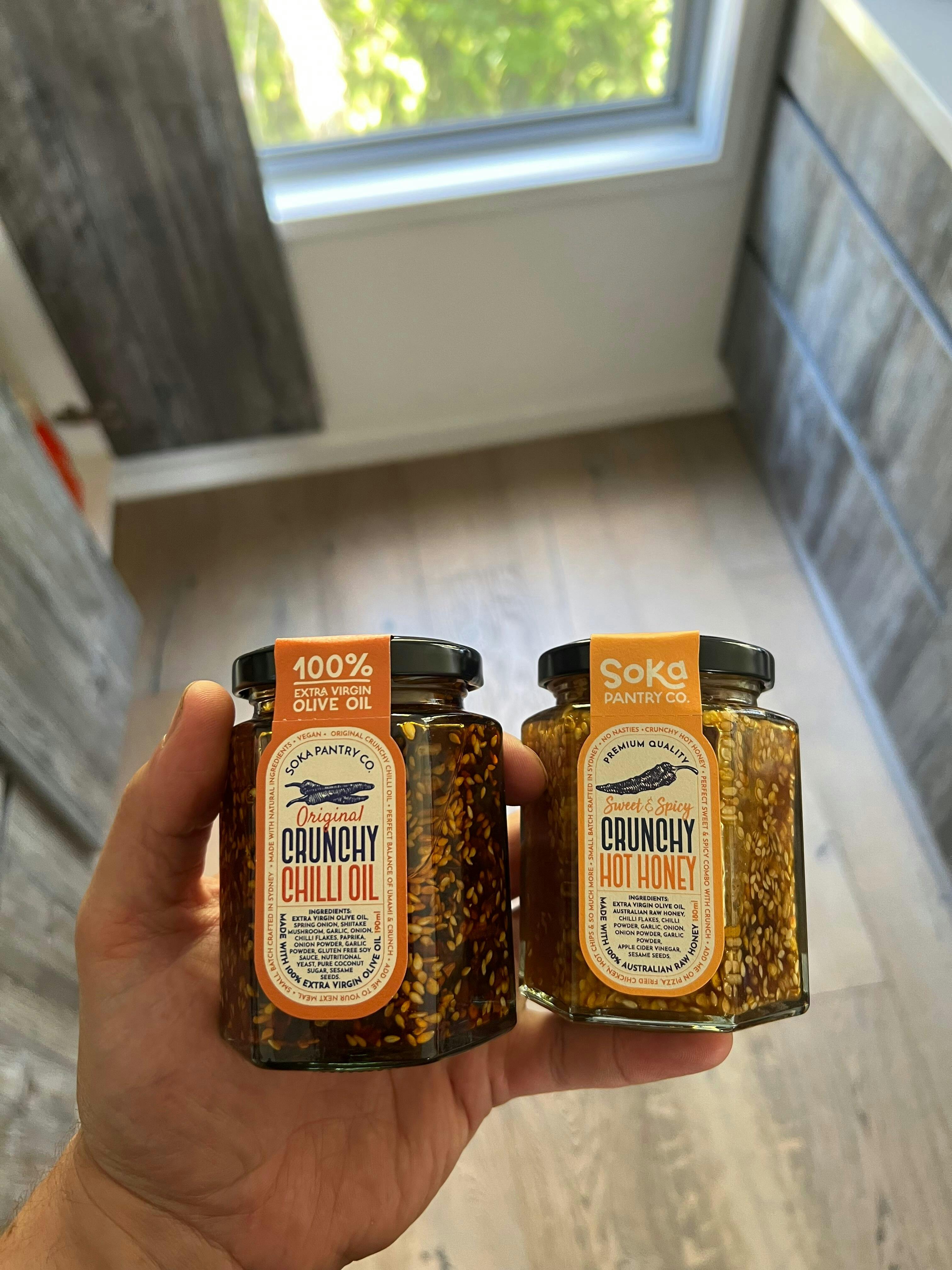Unlike other chilli oils on the market, our chilli oil is made with EXTRA VIRGIN Olive oil. Crunchy Chilli Oil is infused with fresh natural ingredients and topped with crunchy elements such as toasted sesame seeds, onion and garlic to bring the perfect balance of Spicy, Umami Crunch Goodness!